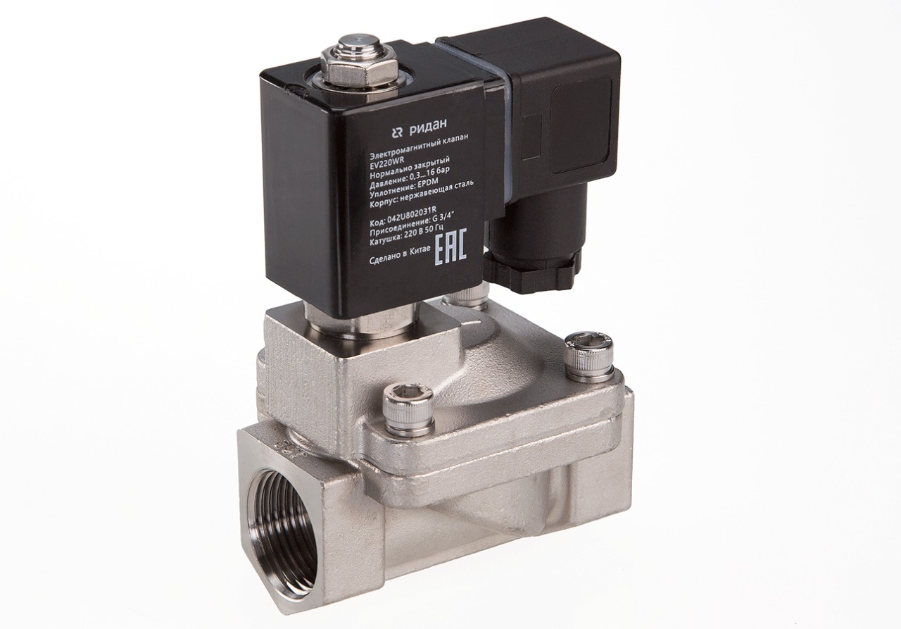 Ридан 042U805002R — Клапан электромагнитный EV220WR, присоединение G 2, материал уплотнения EPDM, нормально закрытый, 0,3…16 бар, с катушкой 24 В, постоянный ток