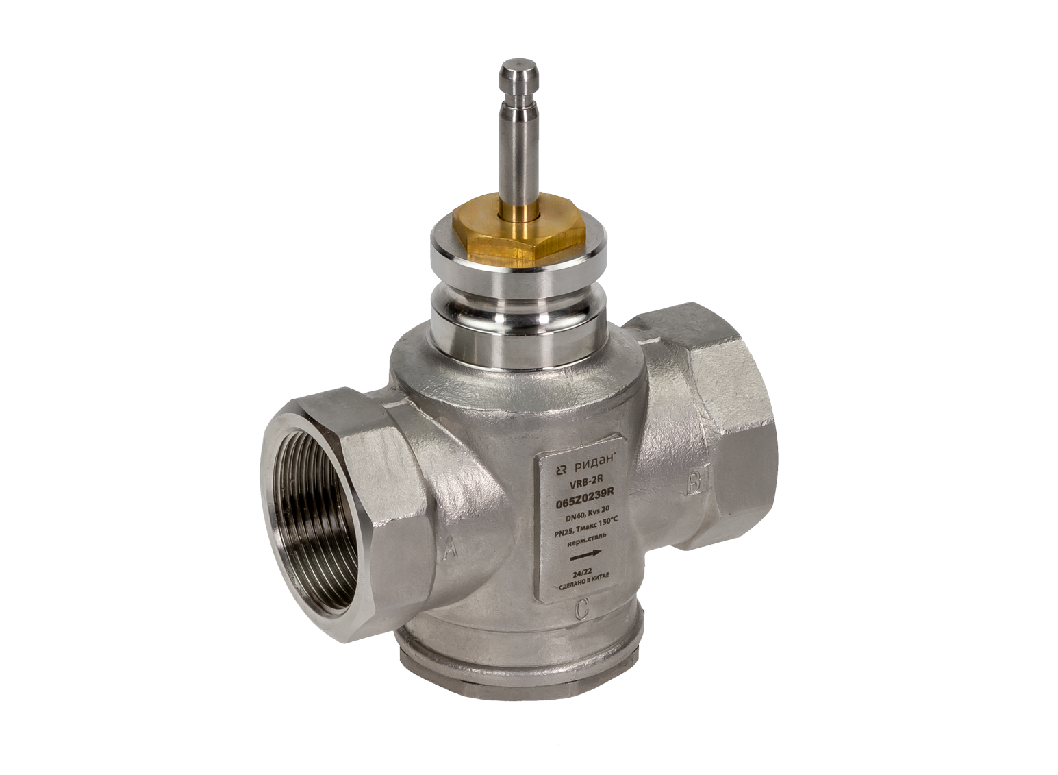 Ридан 065Z0235R — Клапан регулирующий VRB-2R с внутренней резьбой PN25, DN15, Kvs 4 м³/ч, двухходовой, седельный, нержавеющая сталь