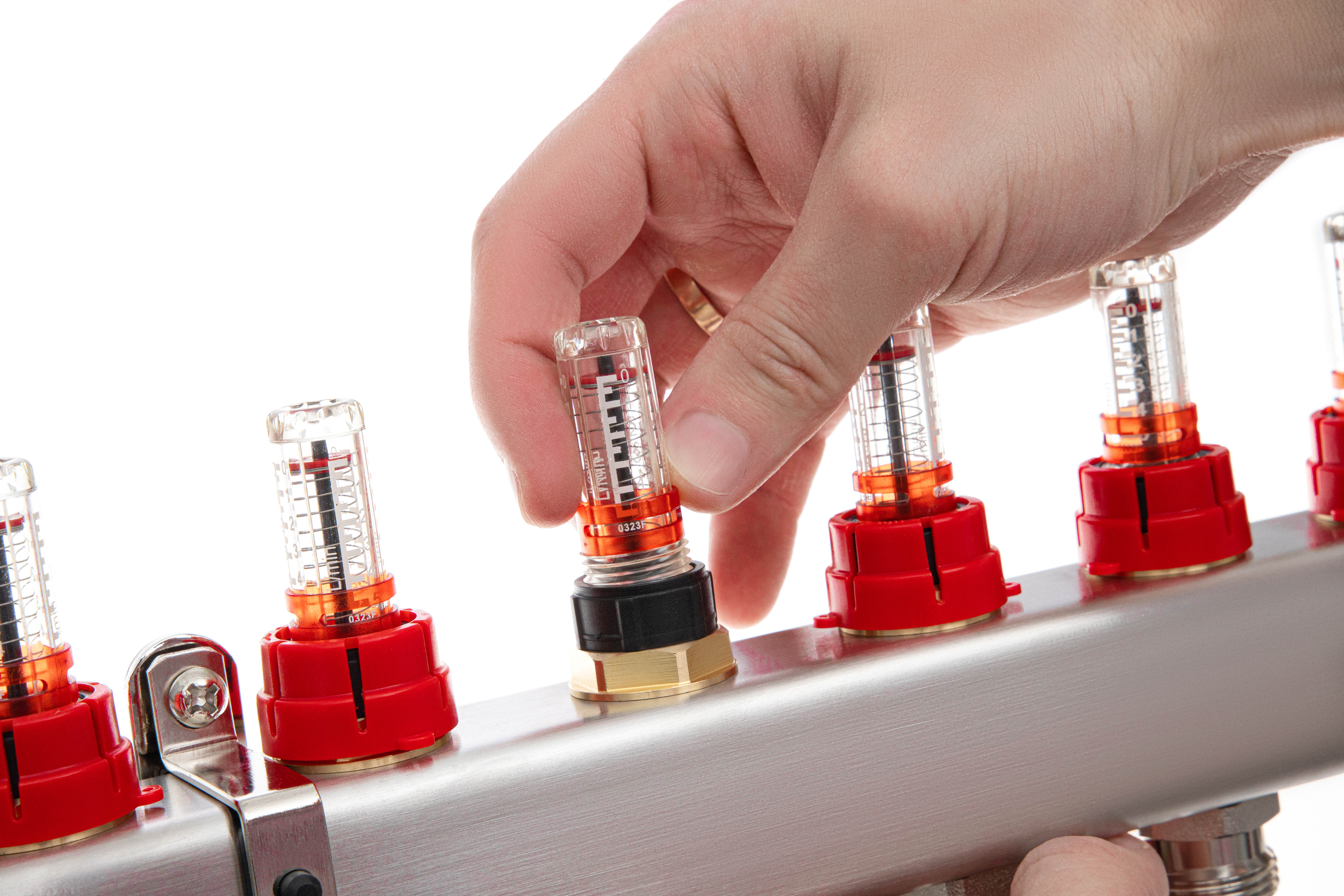 Ридан 088U0962R — Комплект коллекторов SSM-12RF set с расходомерами, кронштейнами, ручным воздухоотводчиком, сливным краном и торцевой заглушкой, 12 контуров